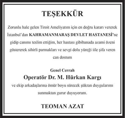 HÜRRİYET TEŞEKKÜR İLANI ÖRNEKLERİ