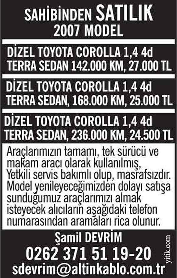 Hürriyet Gazetesi Vasıta İlan Örnekleri