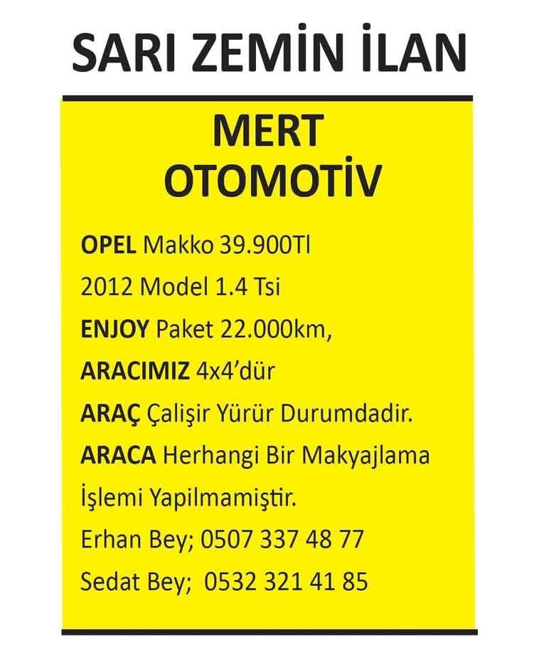 Hürriyet Gazetesi Sarı Zemin Vasıta İlan Örneği