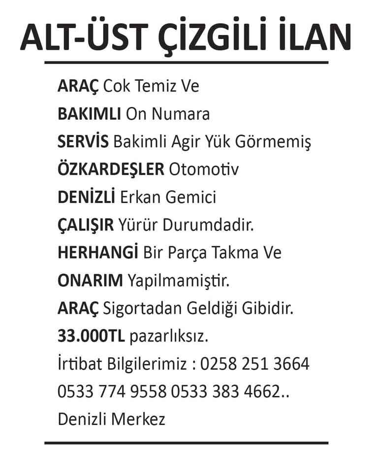Hürriyet Gazetesi Alt Üst Çizgili Vasıta İlan Örneği